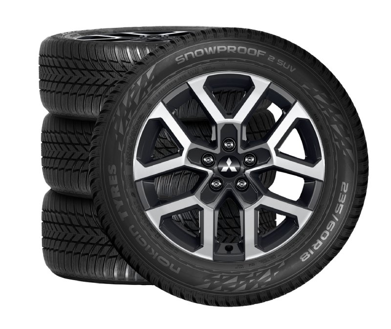 Zimní komplety jsou sestaveny z ocelových nebo slitinových disků a kvalitních zimních pneumatik. Matice kol nebo šrouby nejsou součástí dodávky. Pokud není možné použít původní, je třeba matice nebo šrouby objednat samostatně. Informujte se u svého prodejce Mitsubishi o podrobnostech nabídky pro váš vůz. Uvedené ceny jsou vždy za sadu 4 ks kompletních kol.